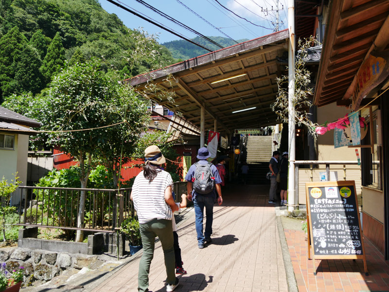 バス停 ケーブル下からは商店・旅館街を徒歩15分ほど歩きます。