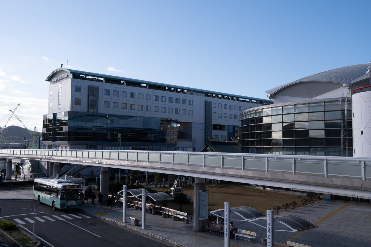 奥の建物が一致。尾道ウォーターフロントビル。一泊したホテルもあります。