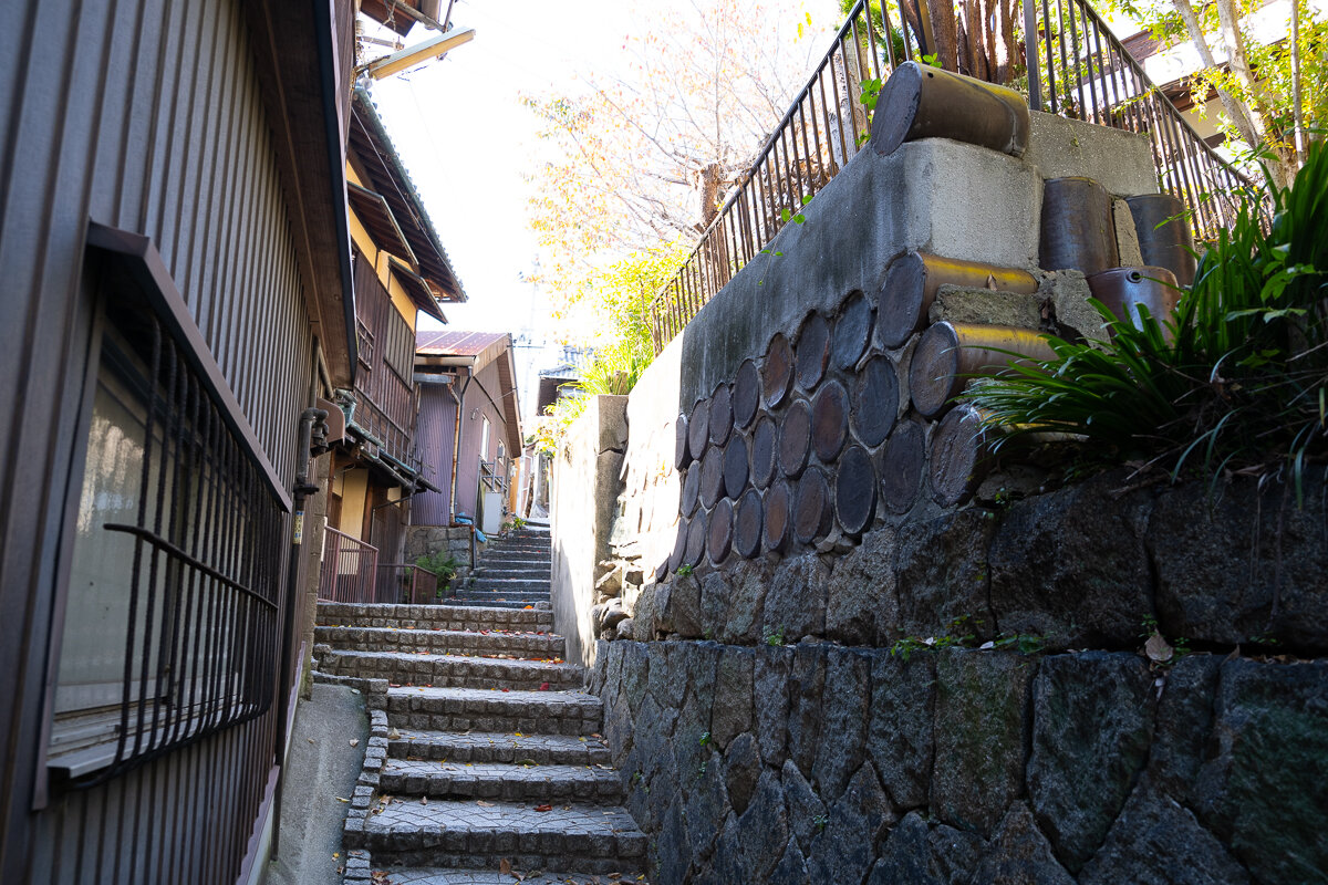右の石垣のみ一致。志賀直哉旧宅より少し下ったあたり。こちらは『た・ま・ゆ・ら』シリーズにも登場します。